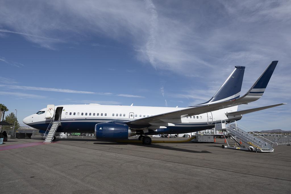 The BBJ, originally based on the 737-700, had its first flight in 1998. This version at NBAA-BACE is the BBJ-1.