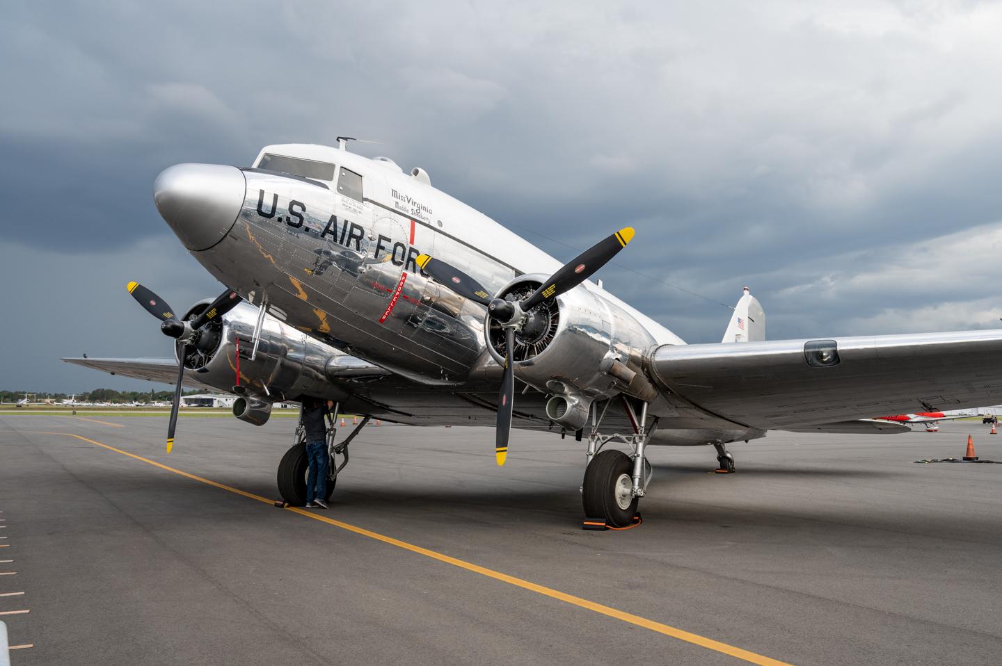 Miss Virginia, a 1943 Douglas C-47 is part of Dynamic Aviation's static display at NBAA-BACE 2022.