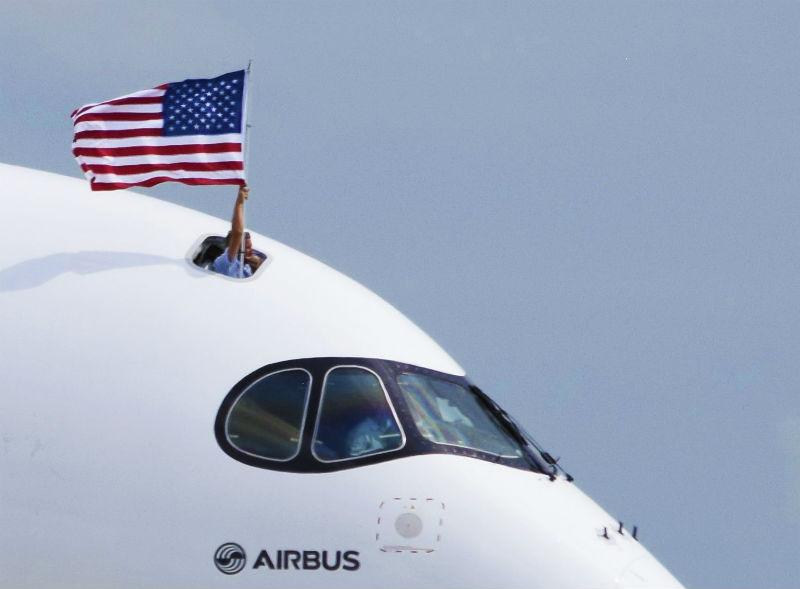 The A350 XWB on arrival at Oshkosh flew the American flag in celebration both of the U.S. airlines that have bought the aircraft and of the American content in every Airbus airliner.