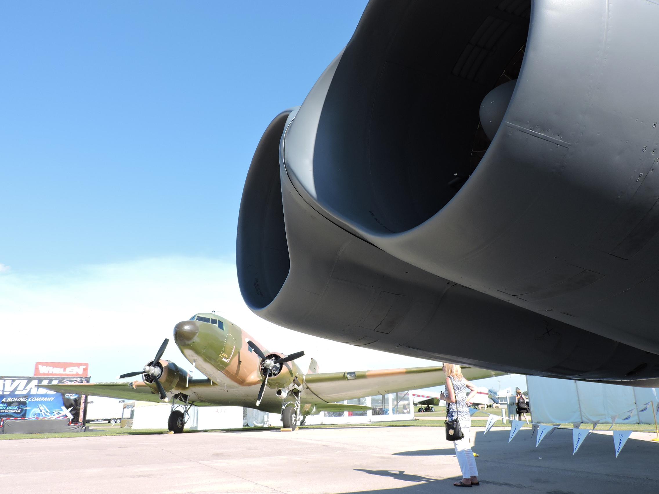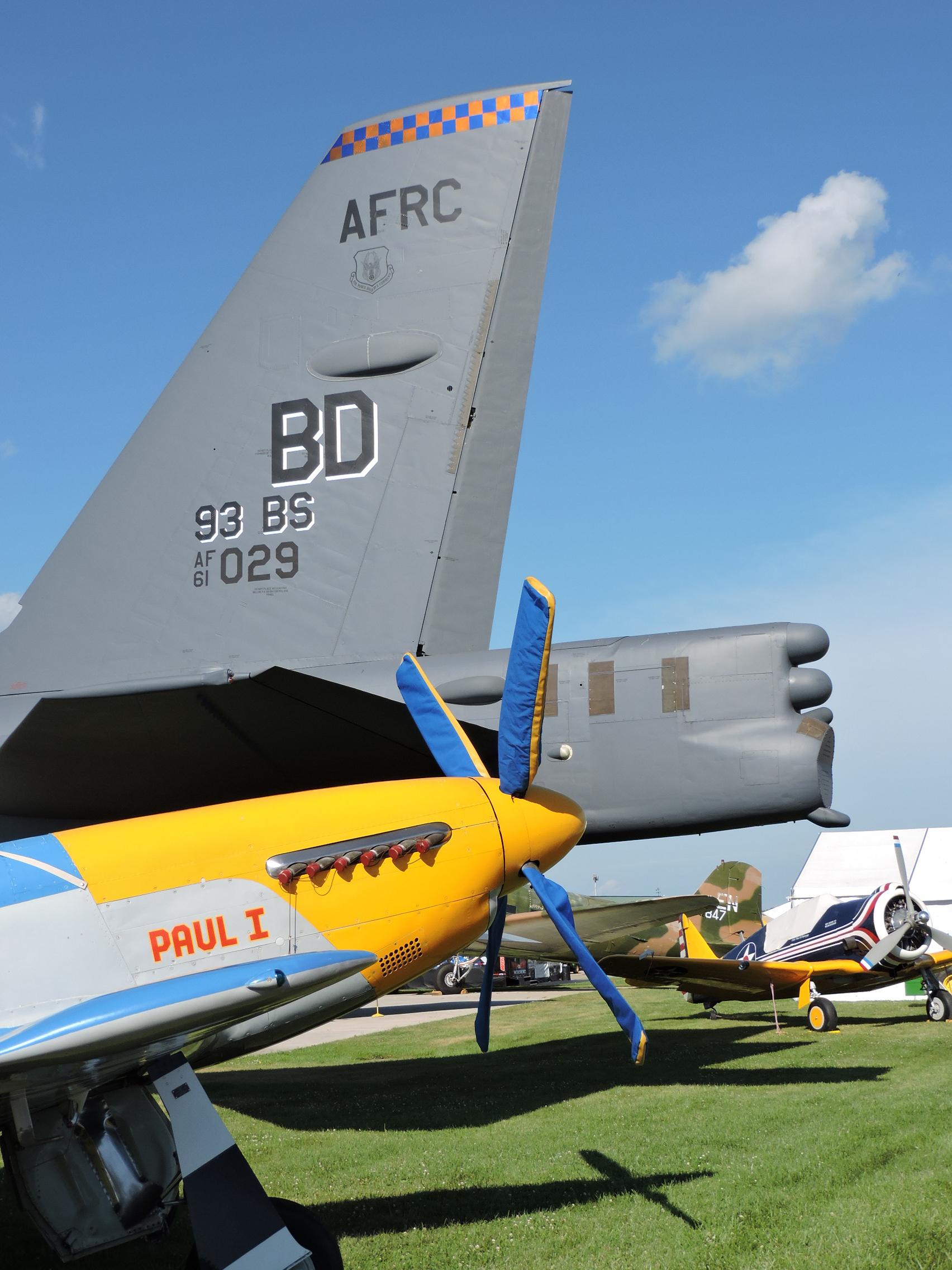 The 40 ft 8 in tall B-52H keeps good company with the EAA Museum’s P-51D “Paul 1,” the world’s only airworthy North American P-64 fighter once owned by EAA founder Paul Poberezny, and C-47 “That’s All Brother” that led the D-Day invasion.