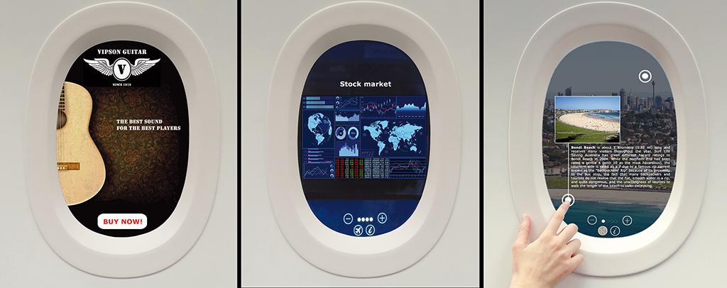 The in-development smart window will enable a passenger to interact, through an integrated touchscreen, with information and on-board services, the Lyon, France-based company says. As it designed the Acti-Vision window with business aviation in mind, it had first thought of including maps, news and meal orders. But the company also could generate revenue by displaying ads and thus become attractive for airlines.