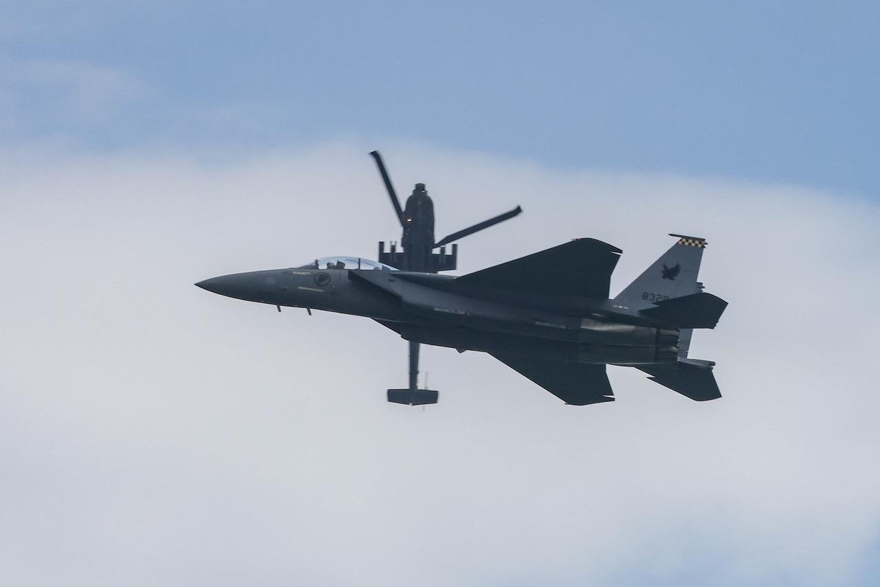The four pilots involved in the display, two in the Apache and two in the F-15SG, have combined 6,000 hr. of flying, averaging 1,500 hr. each.