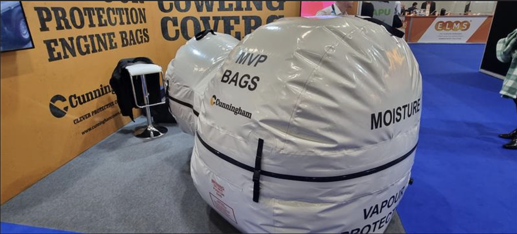 Cuunningham Covers were showcasing their peculiar-looking engine protection bags. It's a moisture vapor protection engine bag built to protect from sand, dust, UV corrosion, scratching and deterioration. Booth number 2731.