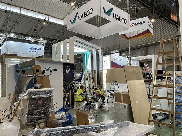 The bare bones of the HAECO booth (#3168) frame are set out. The booth looks sure to provide visitors with a comfy seat, seen here all wrapped up and waiting to be allocated a place is the firm's home for the week.
