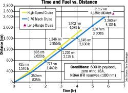 These graphs are designed to illustrate the performance of the SJ30-2 under a variety of range, payload, speed and density altitude conditions. Do not use these data for flight planning purposes because they are gross approximations of actual aircraft performance. Time and Fuel vs. Distance -- This...