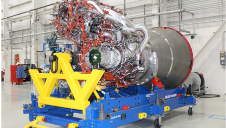 The flight readiness engine, produced at Blue Origin’s Kent, Washington, is the first of two BE-4s ULA will attach to a Vulcan rocket for configuration checks and testing.