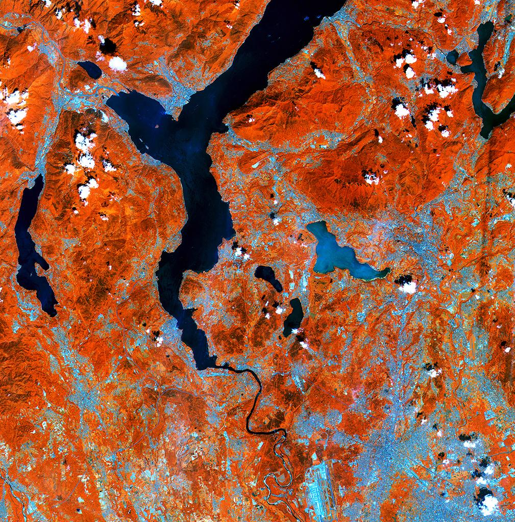 Near the center of the image is the glacial Lake Varese in Italy, appearing lighter blue compared to the other lakes in the image. This demonstrates Sentinel-2A’s ability to measure differences in the conditions of inland water bodies—one of the mission’s main applications, along with land cover, agriculture and forestry.