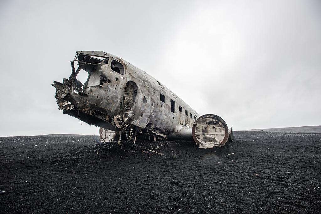 An abandoned U.S. Navy Douglas Super DC-3 plane on Solheimasandur Beach in Iceland.