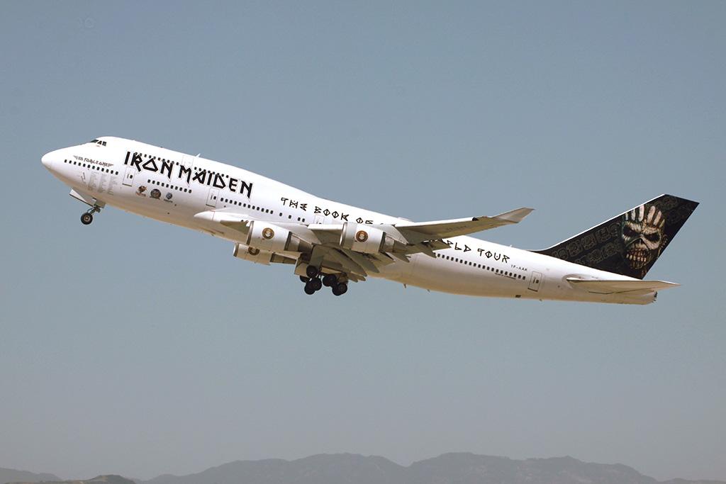 Heavy metal band Iron Maiden's 747, “Ed Force One,” departs Los Angeles International Airport for Tokyo.