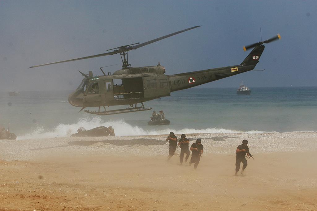 Lebanese navy seals during a maneuver in Okaibe, Lebanon, on the Mediterranean Sea.
