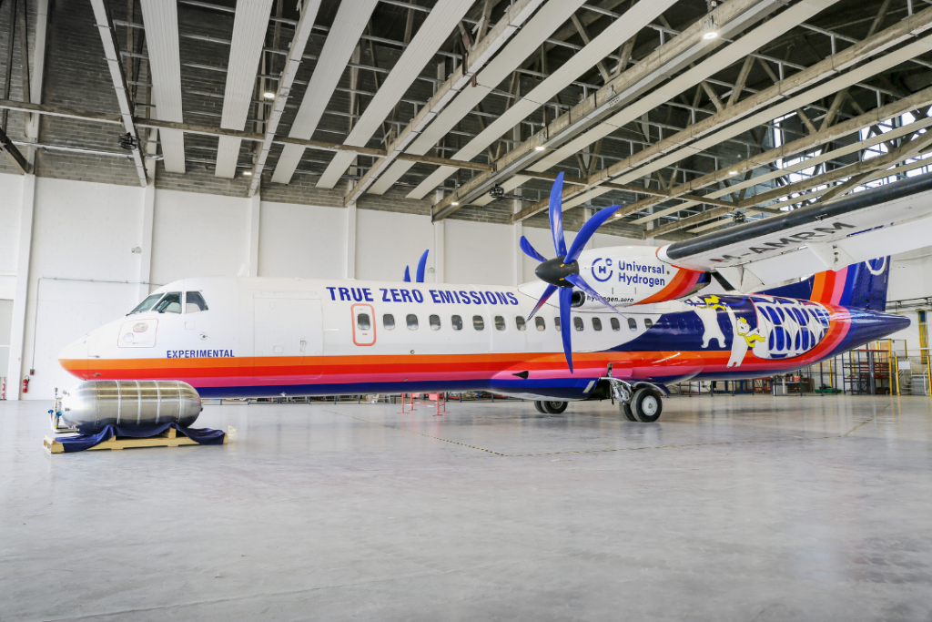 Universal Hydrogen has inaugurated its European engineering design center and headquarters at Toulouse-Blagnac Airport and displayed the ATR 72-500 regional turboprop it is using to develop its hydrogen-electric propulsion retrofit kit.