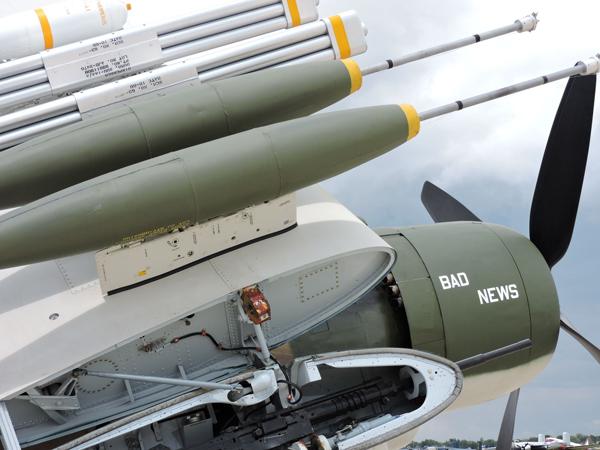 Skyraider ‘Bad News’ is displayed sporting two 7.62 mm Gatling guns, along with a multitude of other cannons, bombs and rockets.