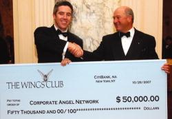 Corporate Angel Network (CAN), was presented with a $50,000 check during a ceremony held at the Wings Club's 65th annual Dinner-Dance at the Waldorf-Astoria in New York City. The award is in recognition of CAN's 25 years of public service to cancer patients by arranging more than 27,000 free flights...