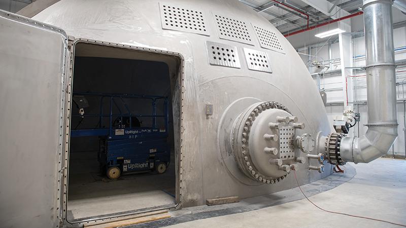 The altitude chamber in the relocated NEAT facility is shaped to create a larger working area for testing.